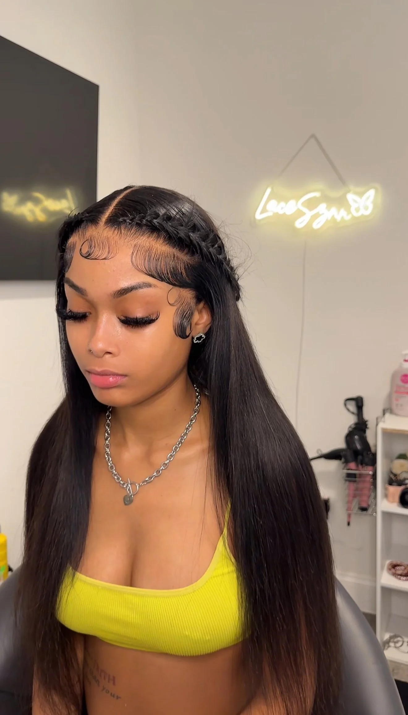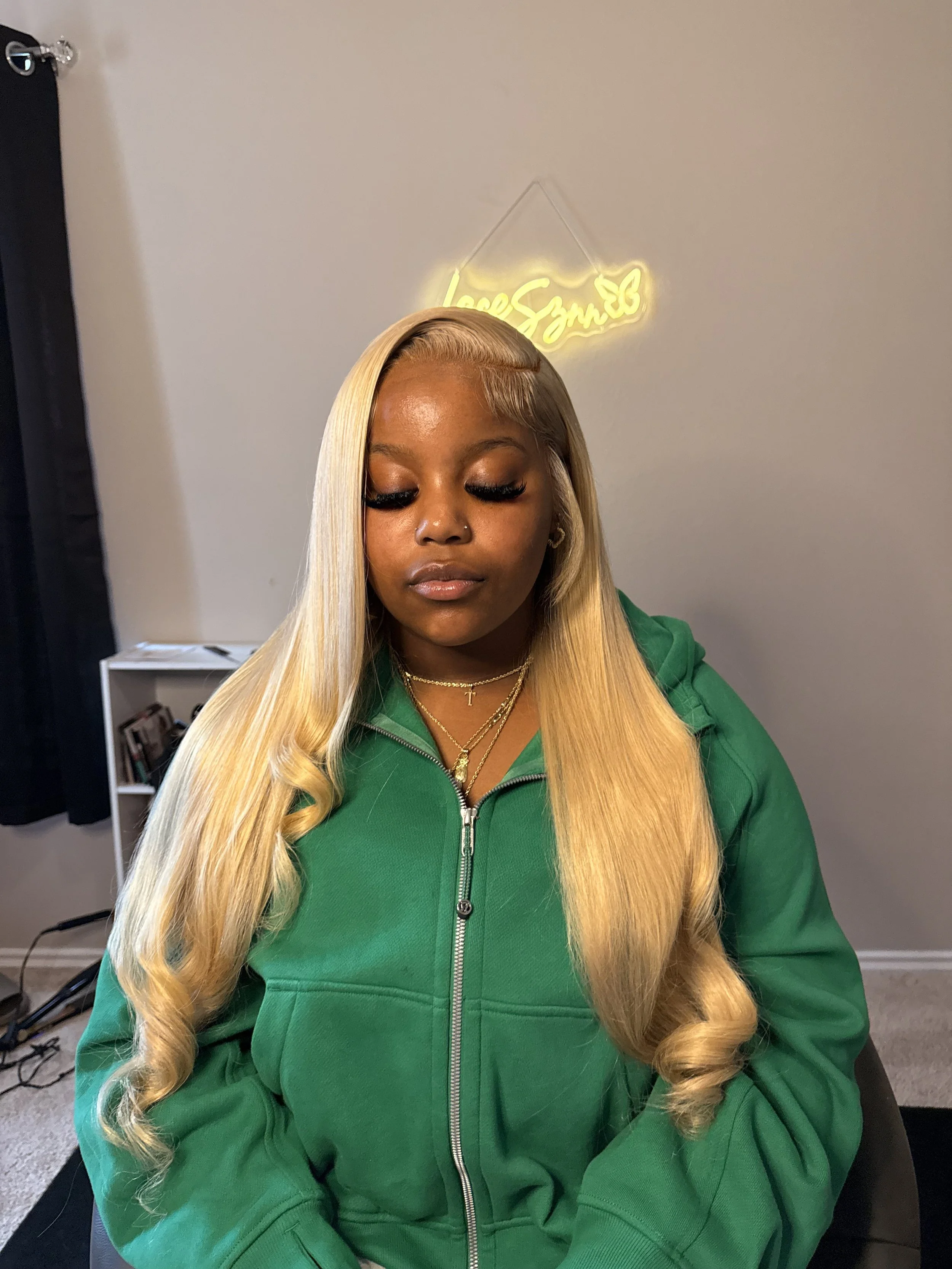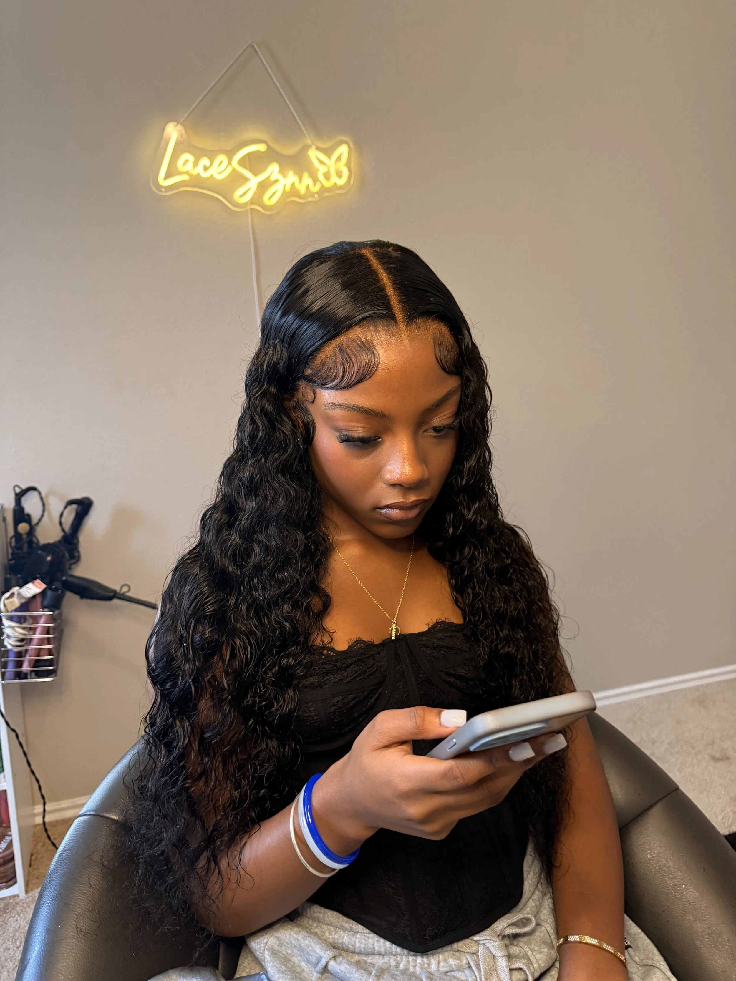 This service is A regular install with a middle or side part + Straightening, Curls, etc. The braid down is also included in this service.